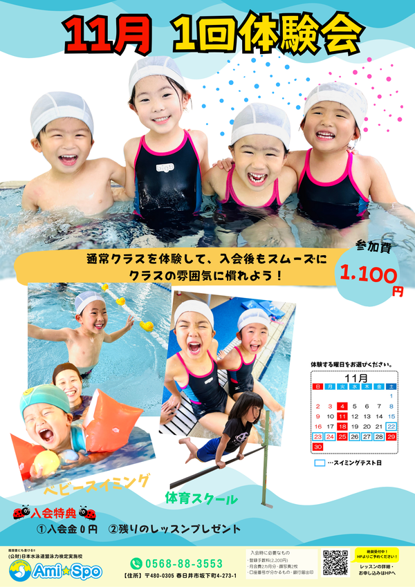 【11月】ジュニアスクール1日体験入学受付中!|春日井市坂下町のスイミングスクールAmi☆Spo