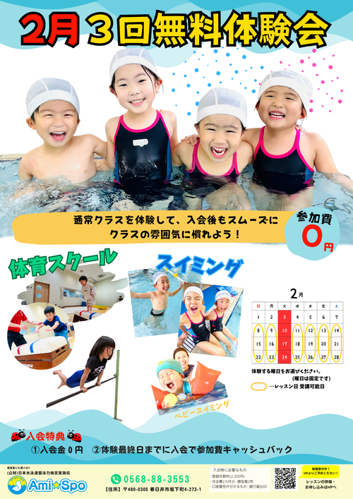 2月はAmi☆Spoの3回体験でジュニアスクールに参加しようー!!