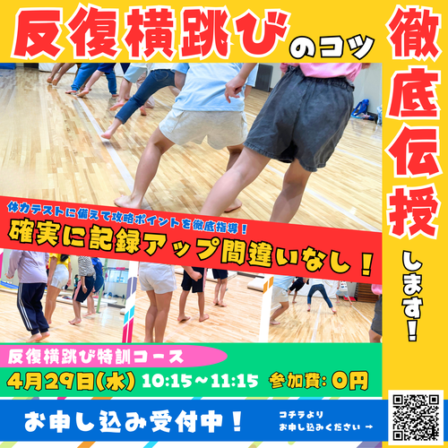 【体育スクール】反復横跳び特訓教室(4月29日)お申し込みページ