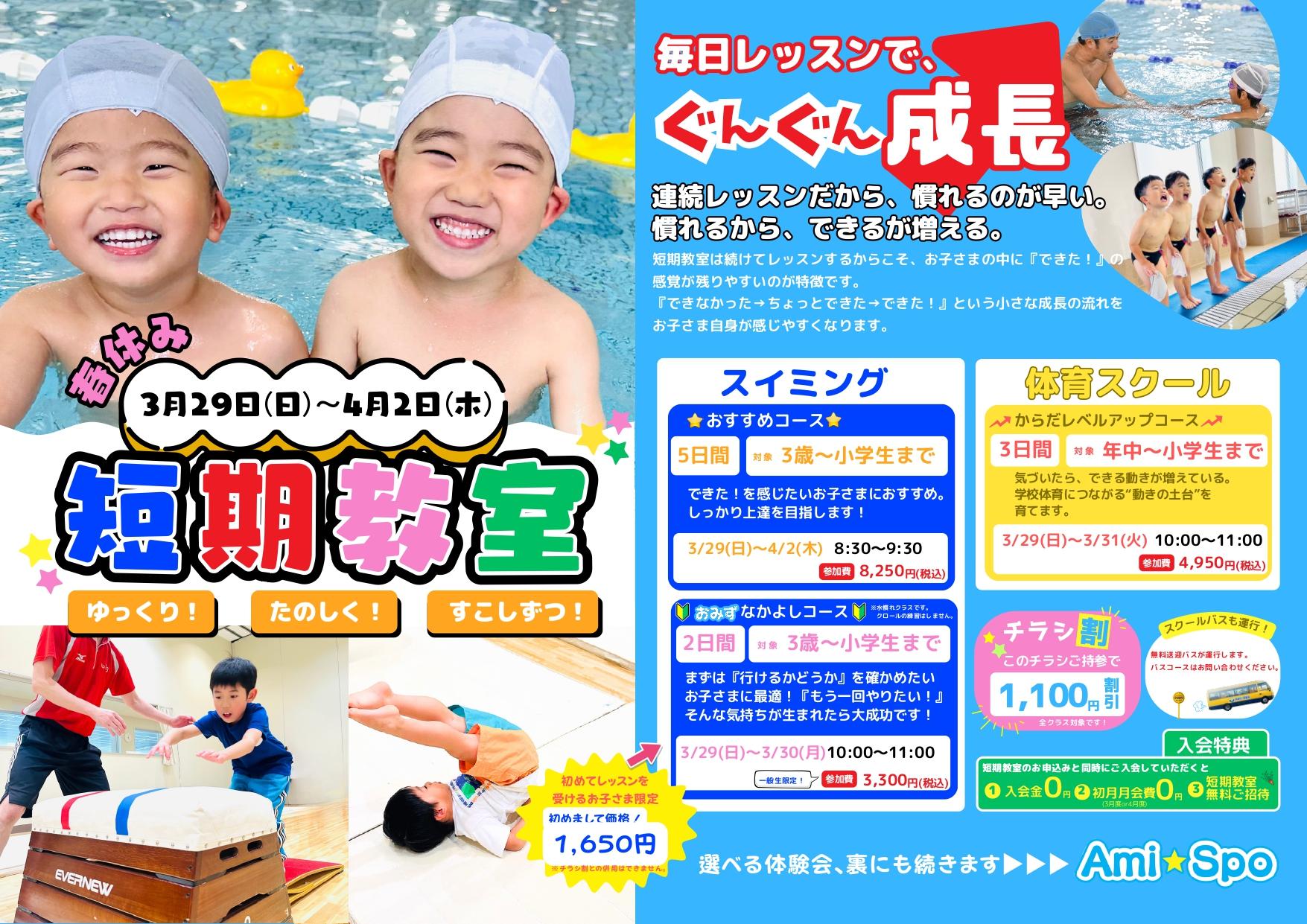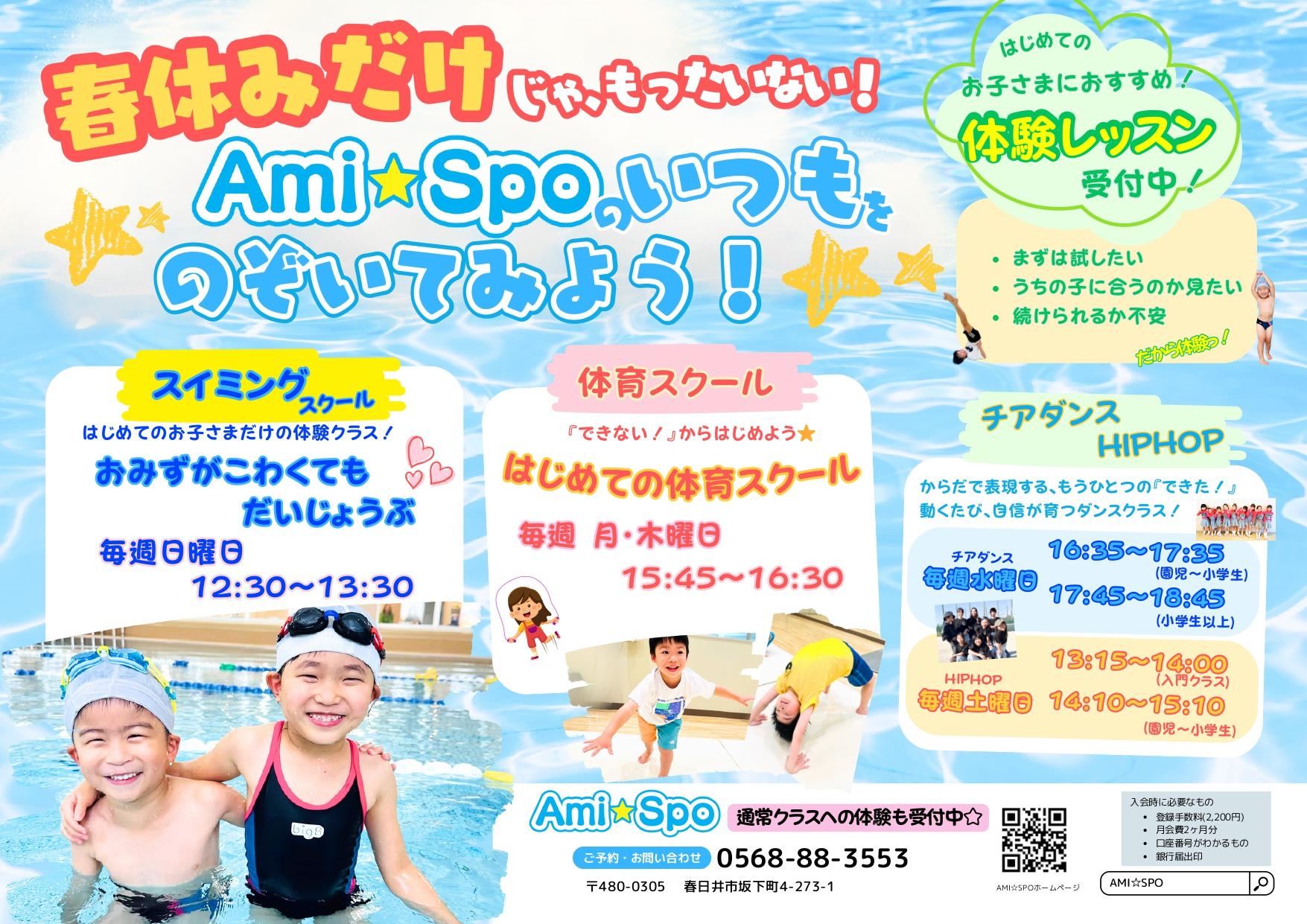 Ami☆Spoでは「スイミング」「体育スクール」など様々な習いごとを開講しています。