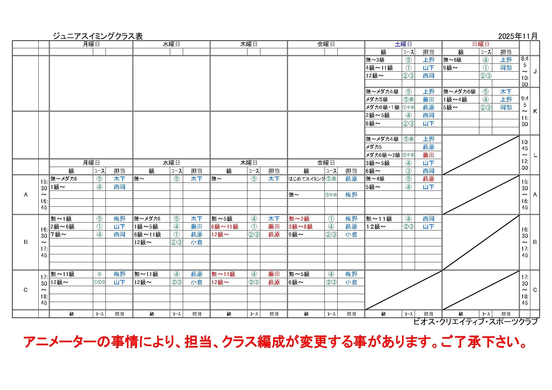 11月度【ジュニアスイミングスクール】担当アニメーター