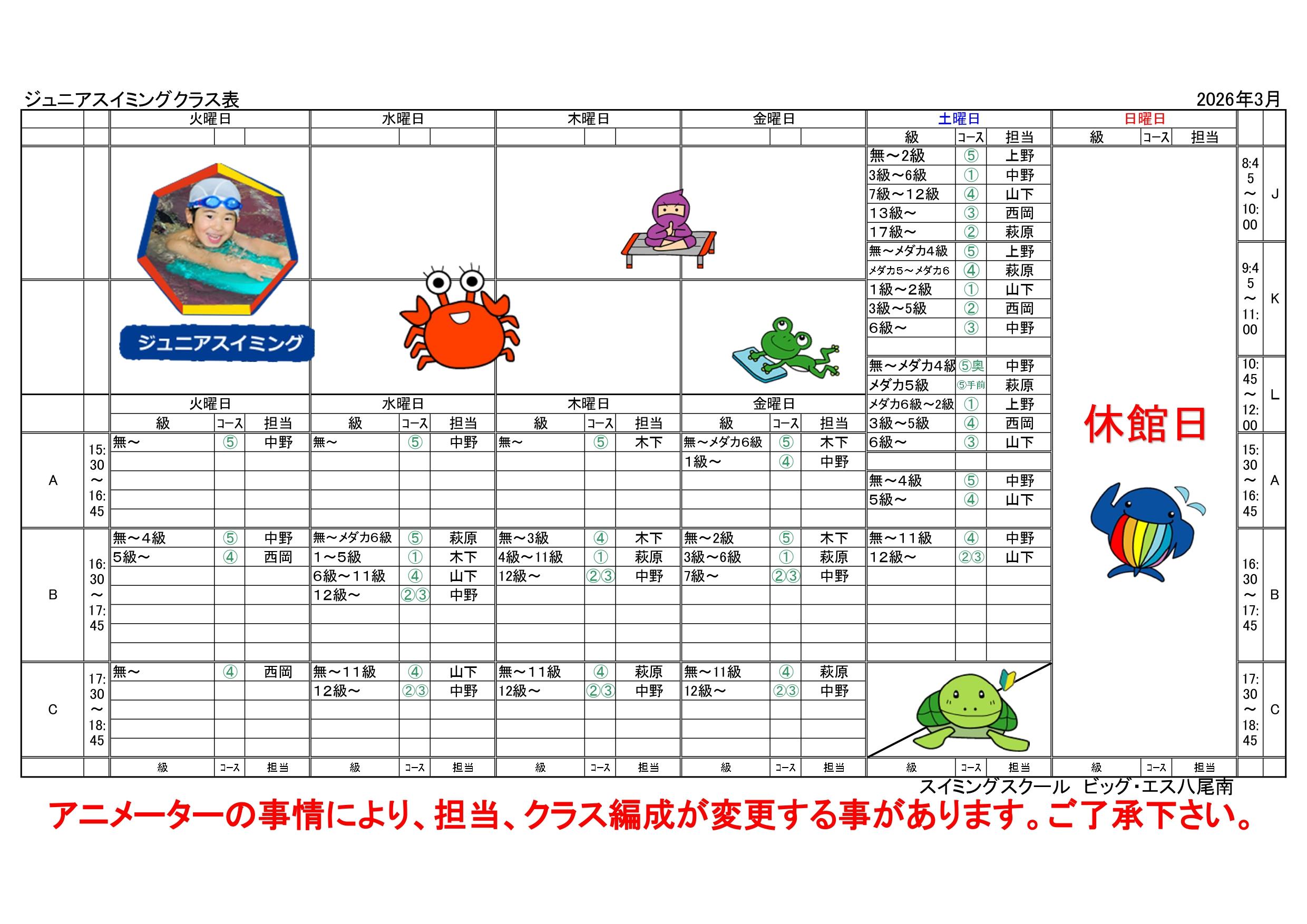 3月度【ジュニアスイミングスクール】担当アニメーター
