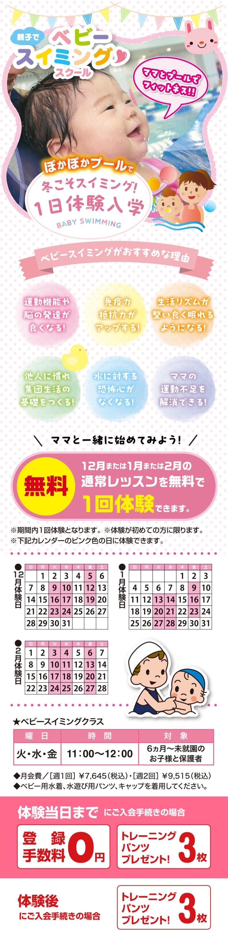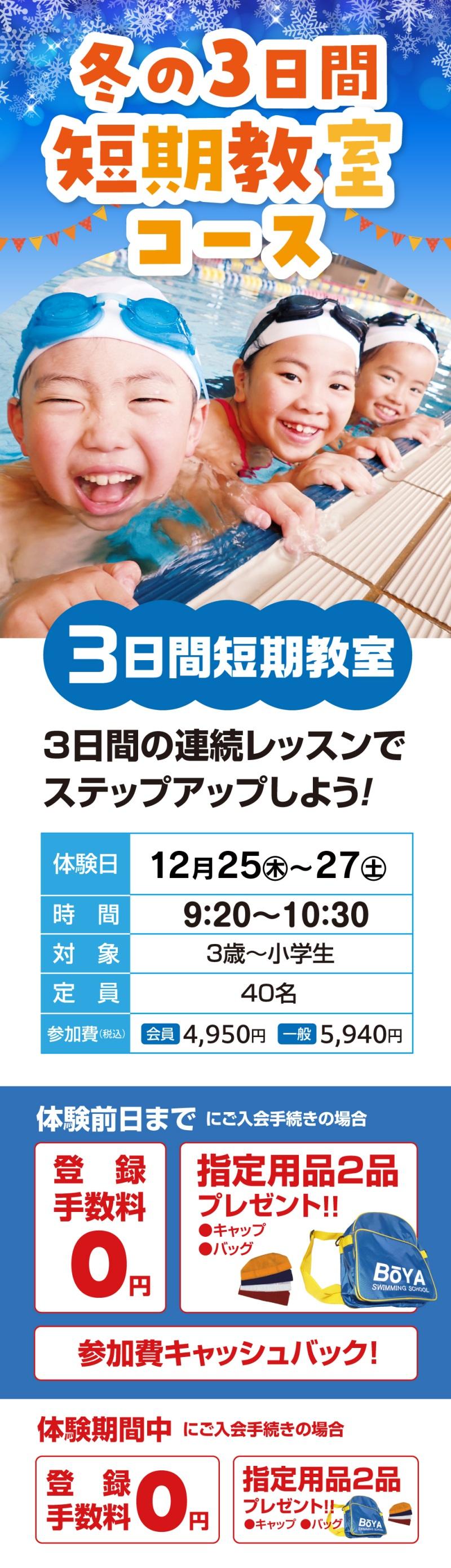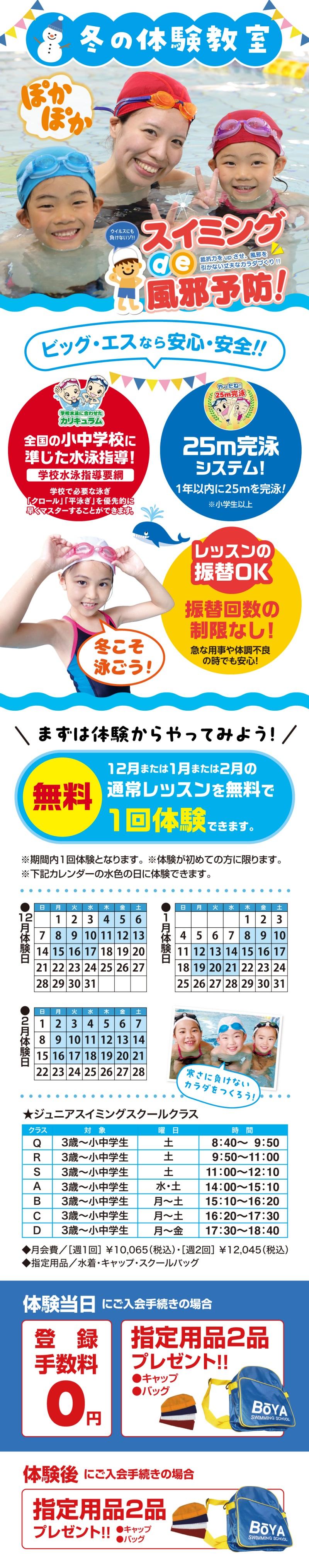 棒屋スイミングスクールでは12月~2月の期間、各スクールにて体験レッスン受講生を募集します!!
