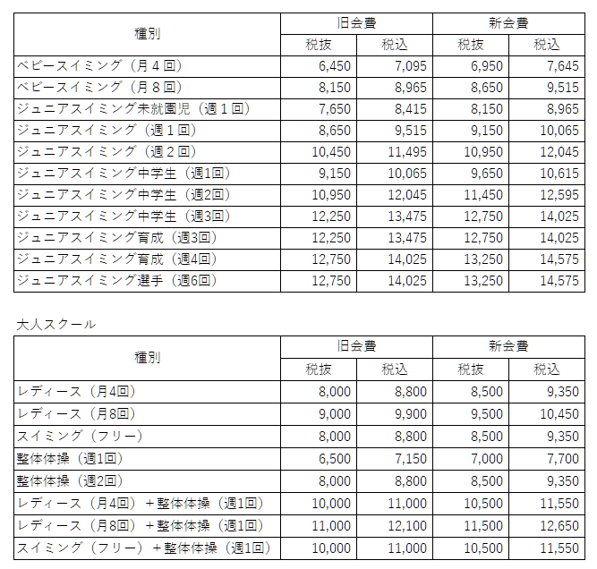 さてこの度、電気・ガスなどのエネルギー価格の高騰、昨今の最低賃金引上げ等による人件費の上昇、さらに施設の老朽化による修繕費の増加により、スクール運営にかかるコストが大きく増加しております。これまで商品内容の変更や経費削減など、さまざまな努力を重ねてまいりましたが、現在は赤字での運営を余儀なくされており、現状を維持しながらサービスの質を保つことが困難な状況となっております。