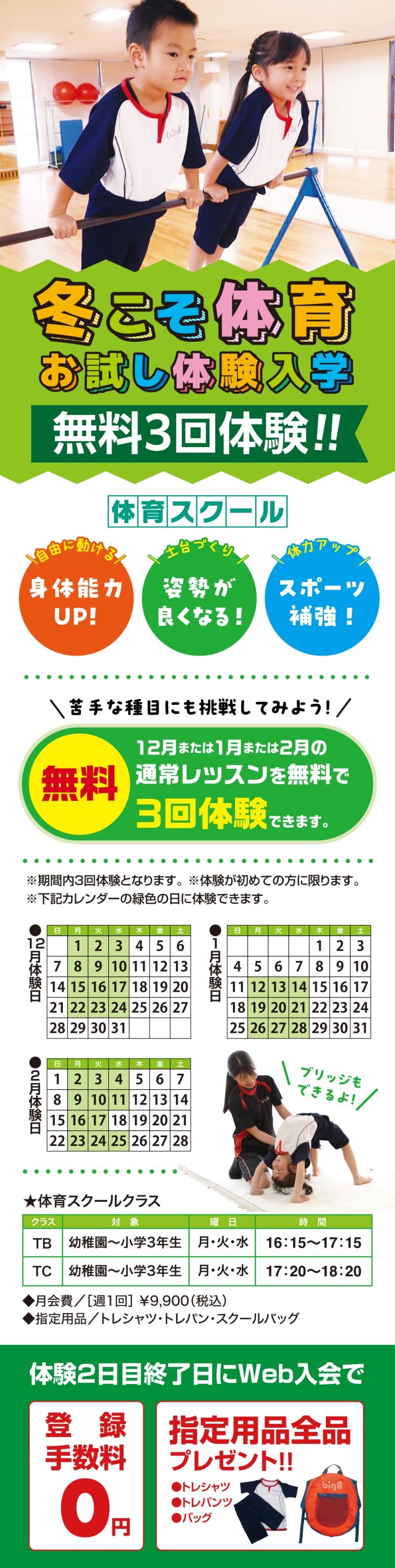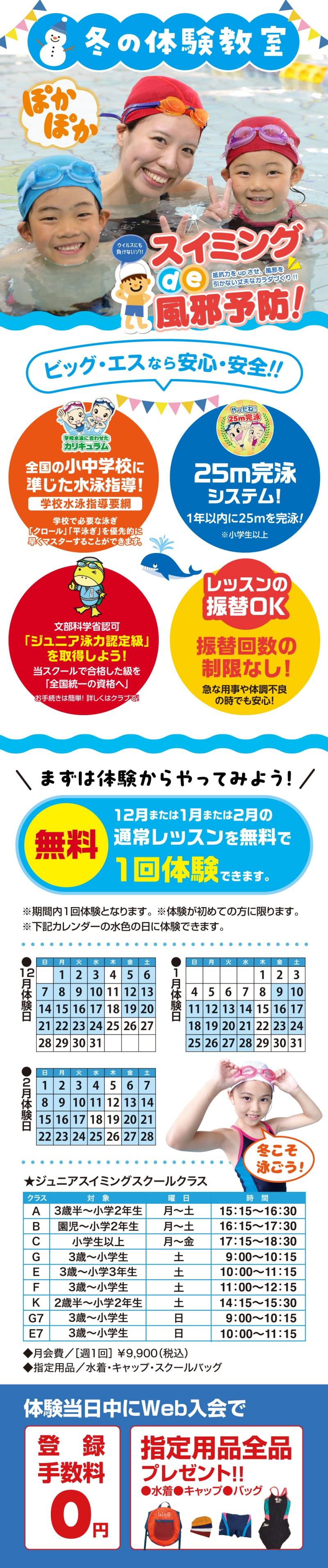 ビッグエス千城台では12月~2月の期間、各スクールにて体験レッスン受講生を募集します!!