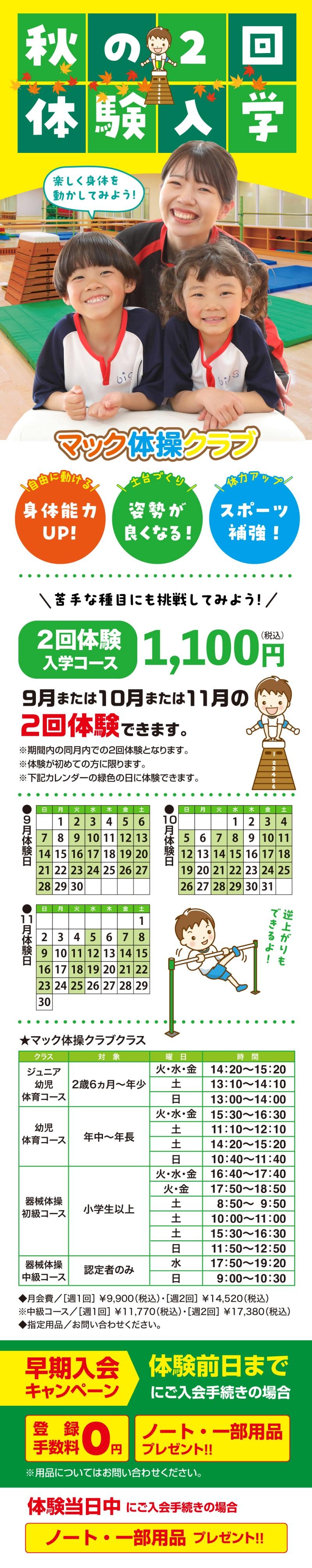 ジュニアスクール「秋の体験教室」のご案内です!!