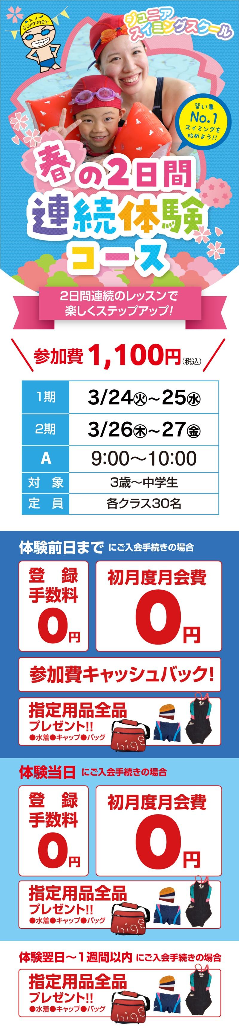 ジュニアスクール「春の体験教室」のご案内です!!