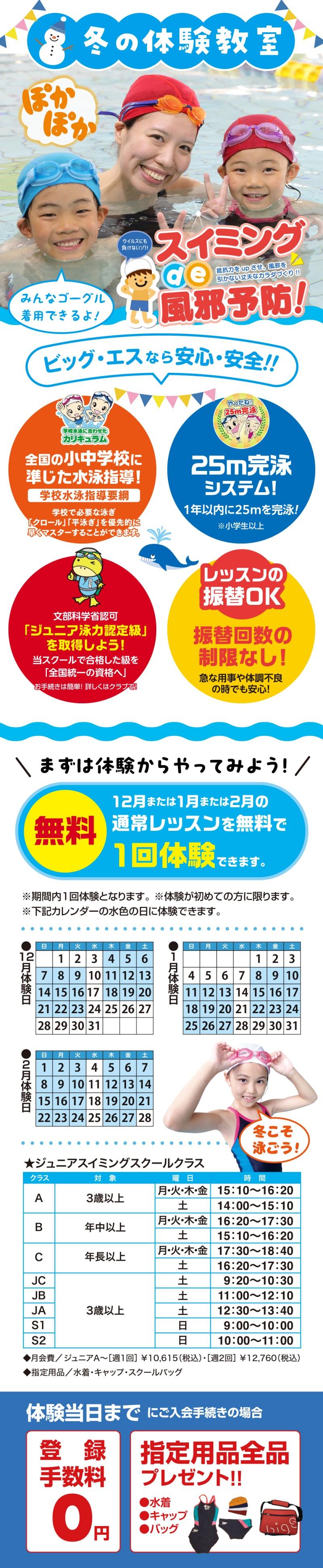 ビッグエス加木屋では12月~2月の期間、各スクールにて体験レッスン受講生を募集します!!