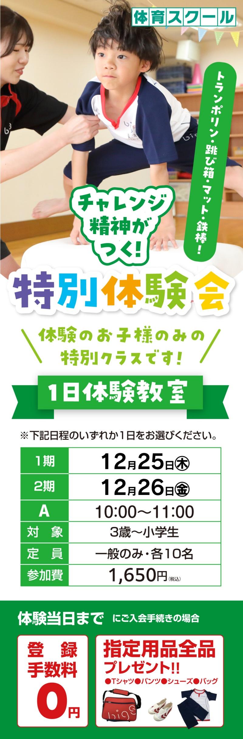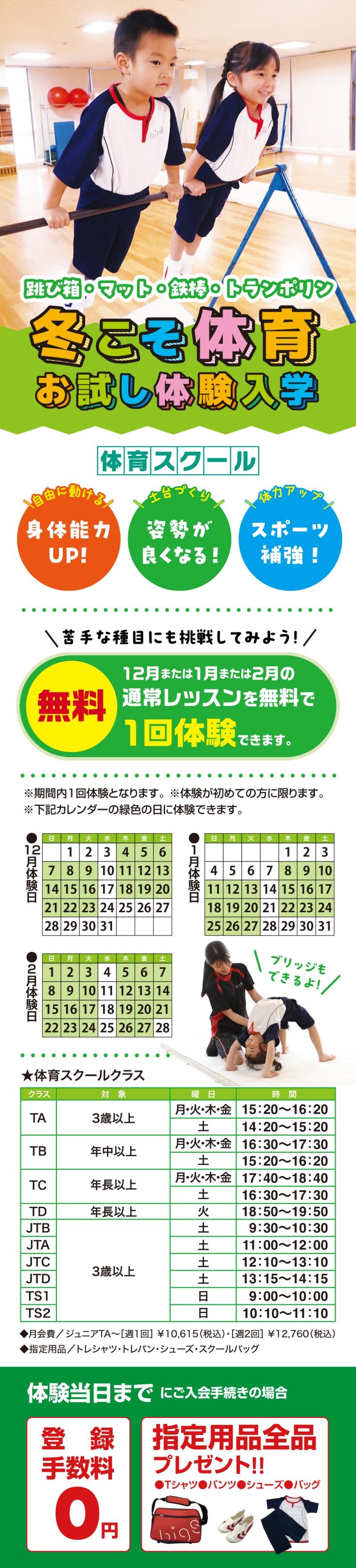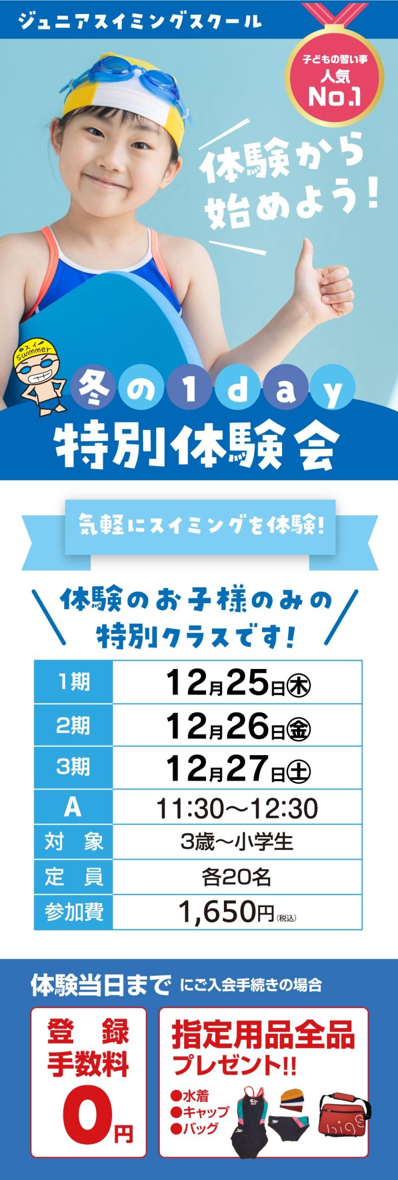 ジュニアスクール「冬の体験教室」のご案内です!!