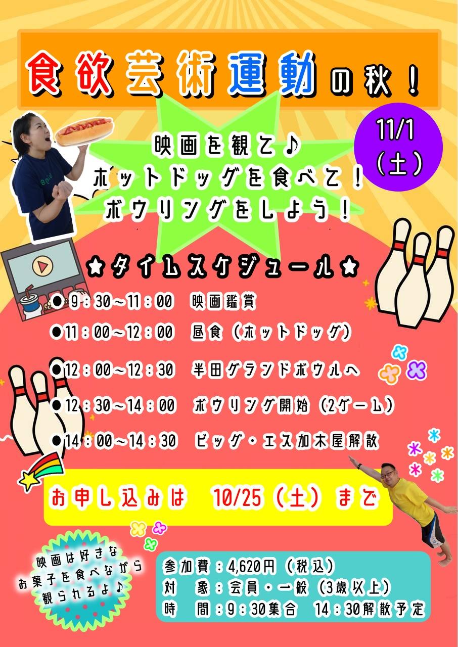 お申込みは10/25(土)までとなっておりますので、ご希望の方はビッグ・エス加木屋フロントまでお願いいたします。