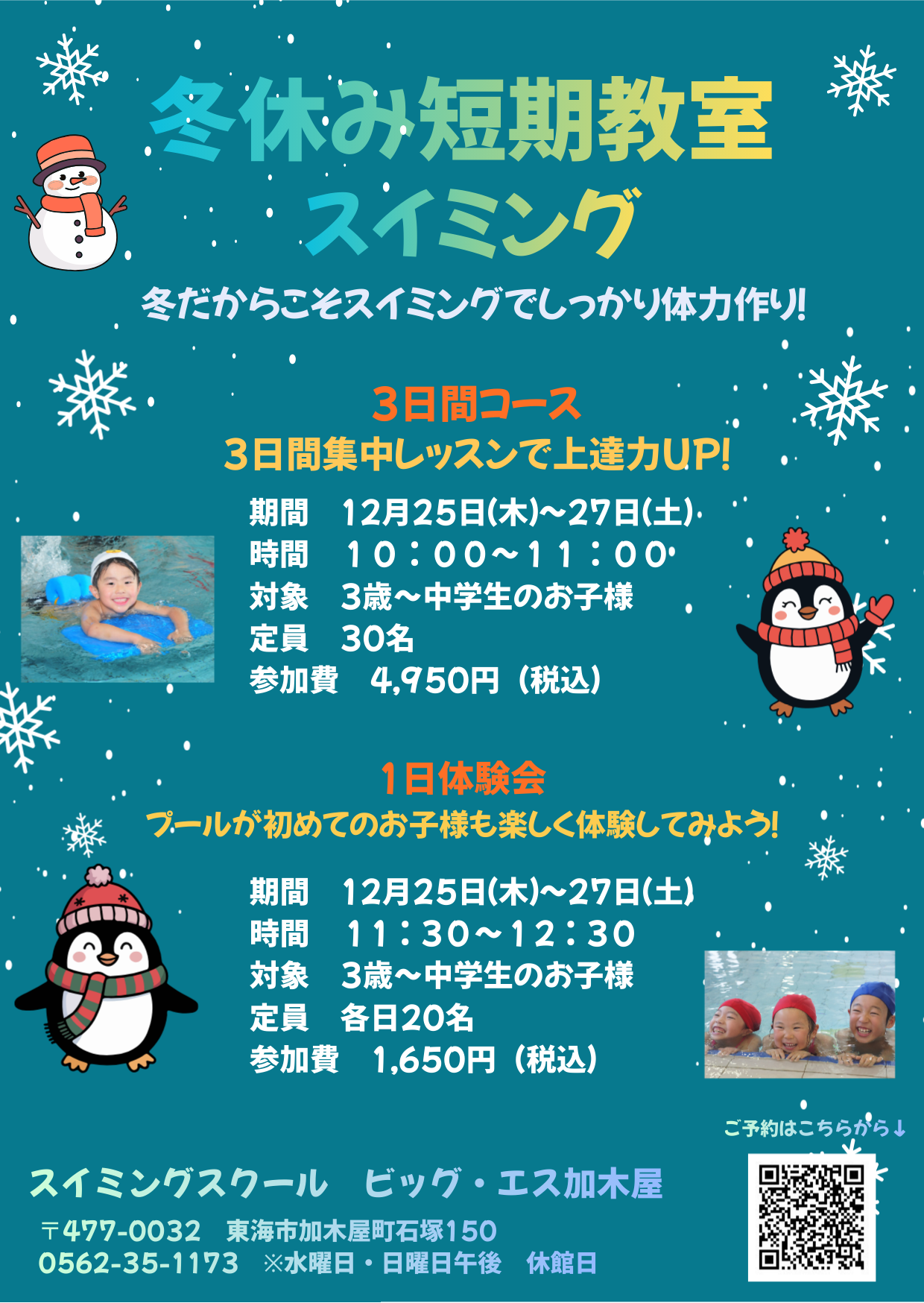 只今ビッグ・エス加木屋では、冬休み短期教室の申込受付中です☆
