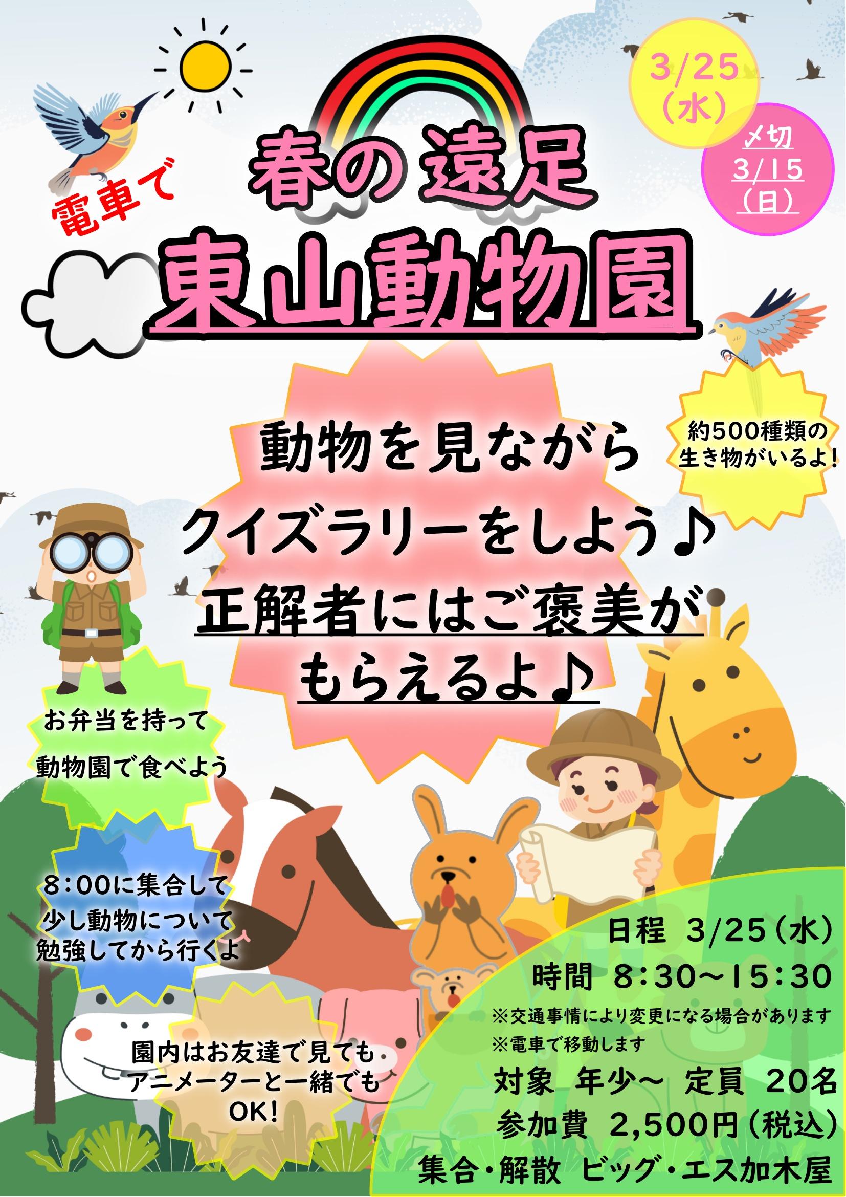 3/25(水)春の遠足「東山動物園」へ行こう!