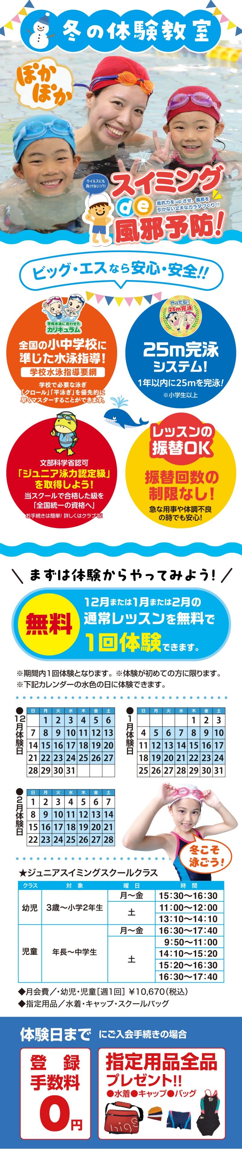 ビッグエス木更津では12月~2月の期間、各スクールにて体験レッスン受講生を募集します!!