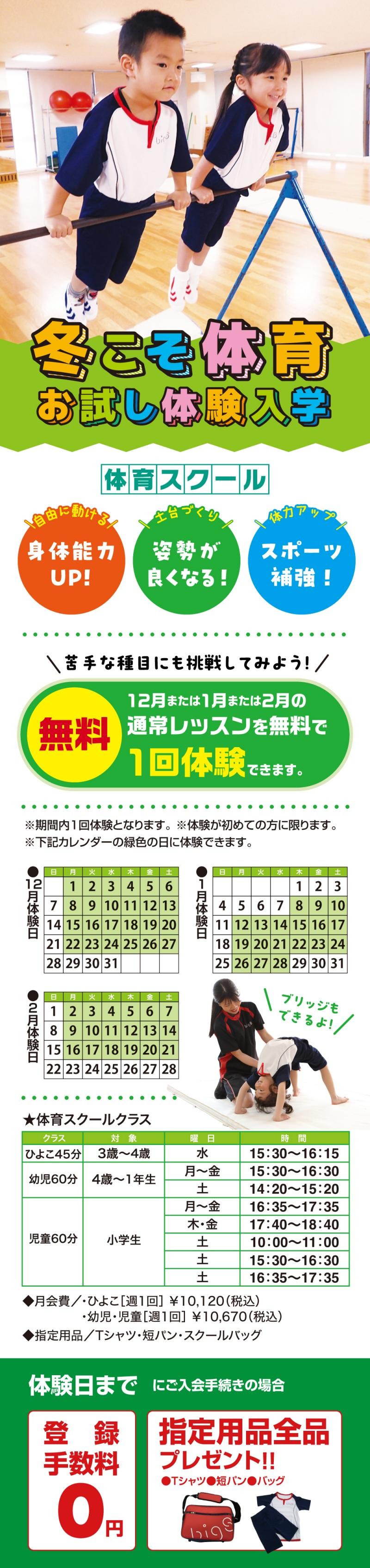 ジュニアスクール「冬の体験教室」のご案内です!!