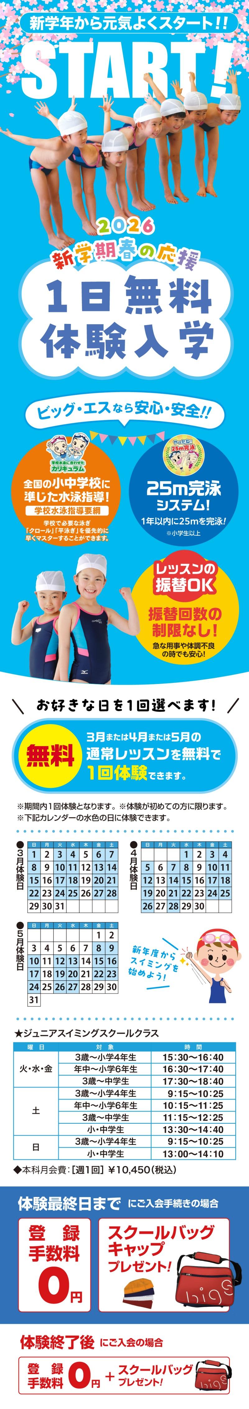 ビッグエスくずはでは、3月~5月で各スクールにて体験レッスン受講生を募集します!!
