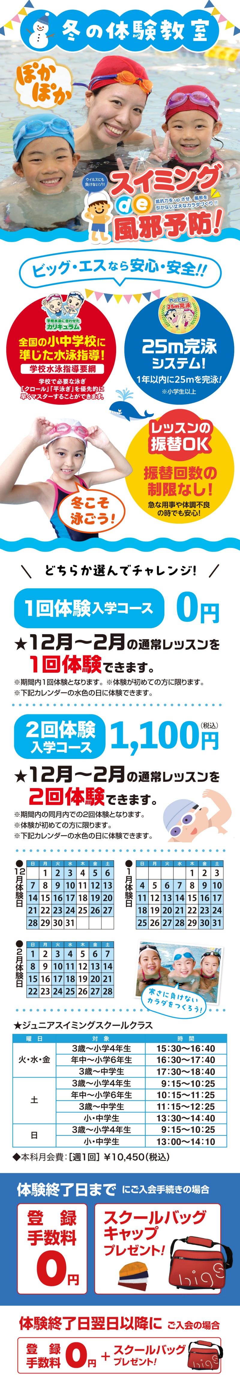 ビッグエスくずは では12月~2月の期間、各スクールにて体験レッスン受講生を募集します!!