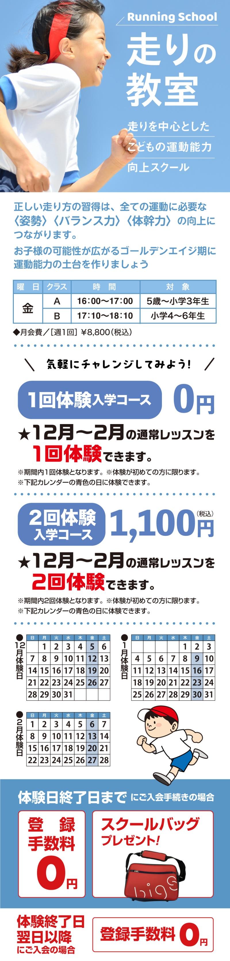 ジュニアスクール「冬の体験教室」のご案内です!!