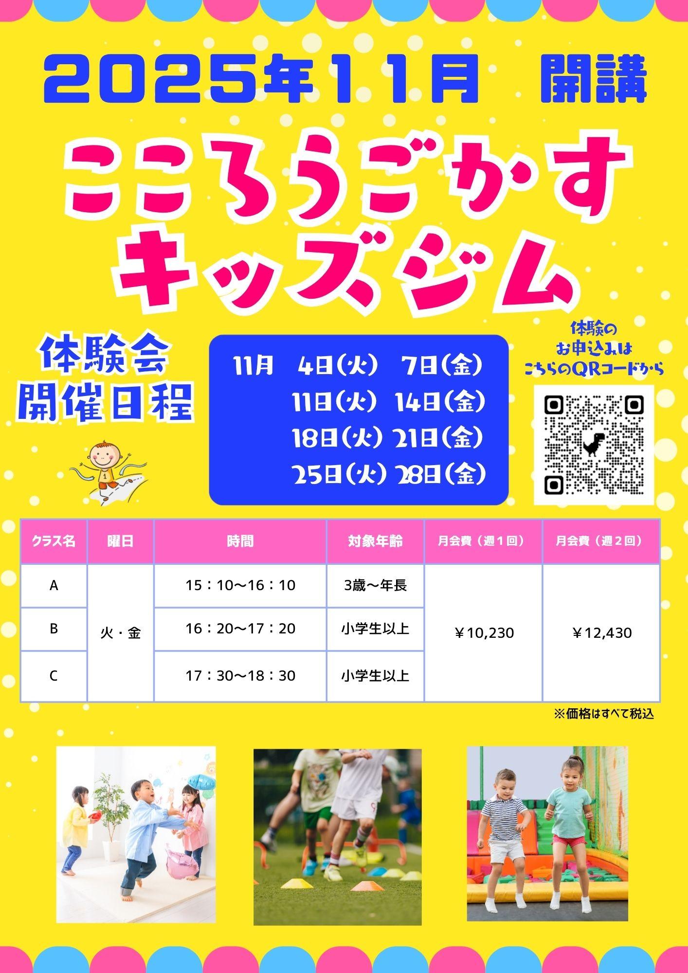 新スクール 『こころうごかすキッズジム』 11月開講♪