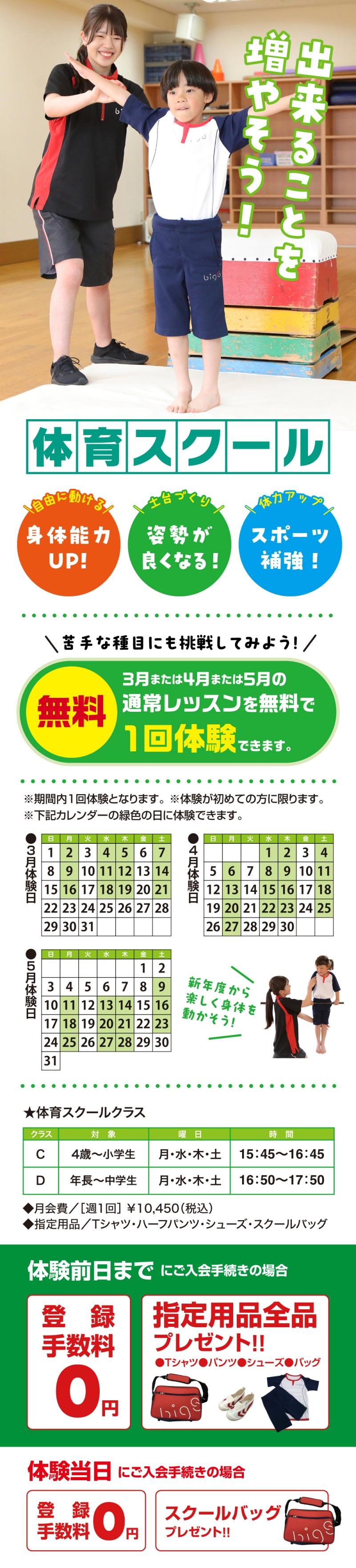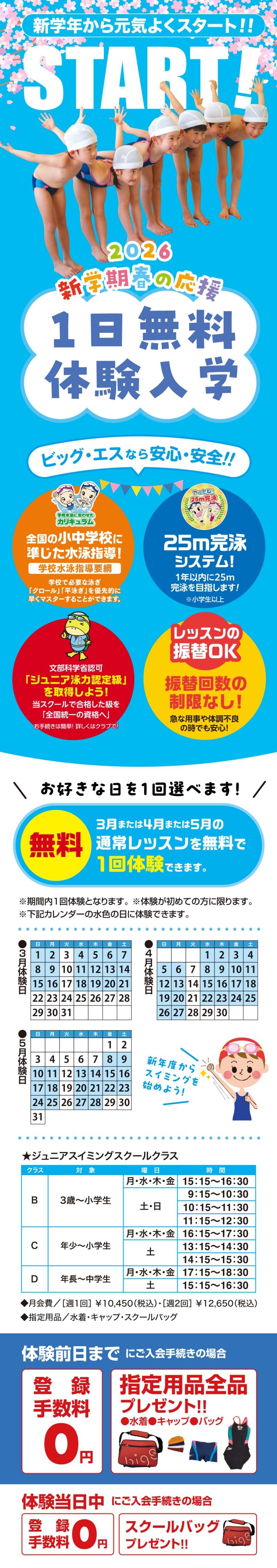 ビッグエス緑では、3月~5月で各スクールにて体験レッスン受講生を募集します!!