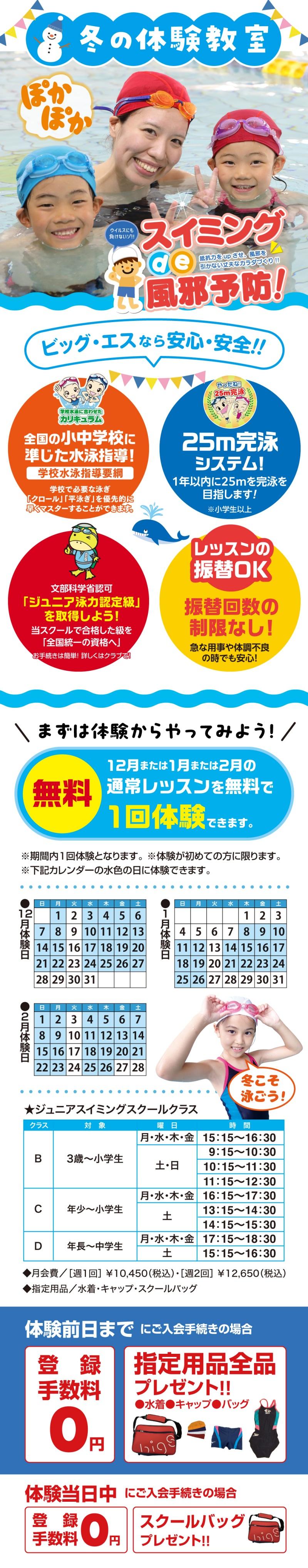ビッグエス緑では12月~2月の期間、各スクールにて体験レッスン受講生を募集します!!