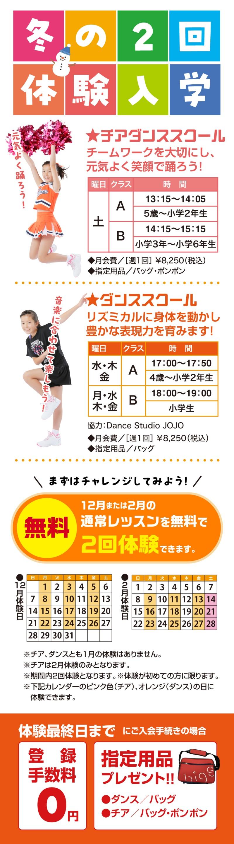 ジュニアスクール「冬の体験教室」のご案内です!!