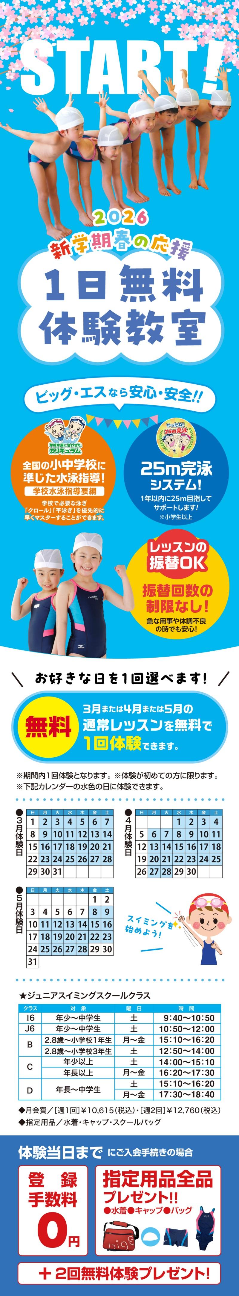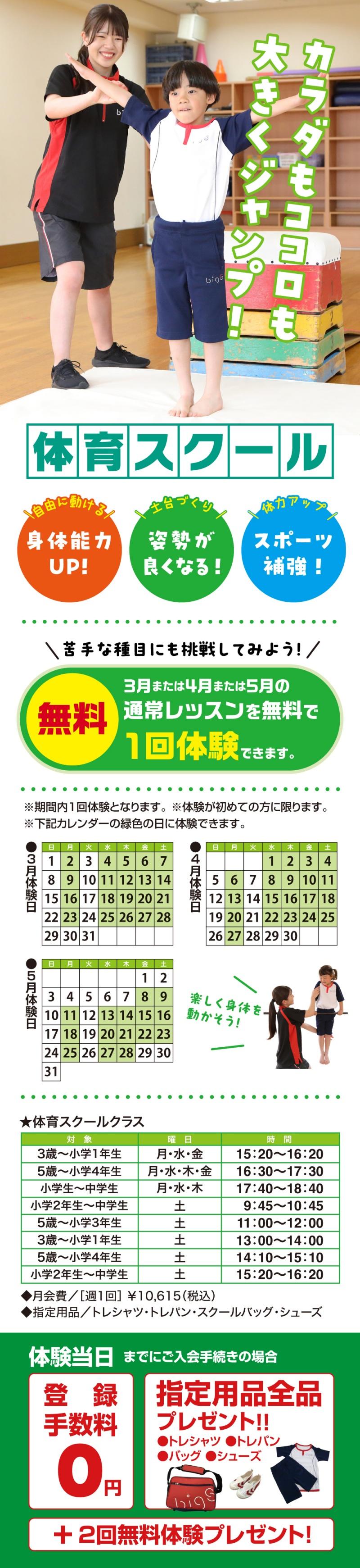 ビッグエス東海では、3月~5月で各スクールにて体験レッスン受講生を募集します!!