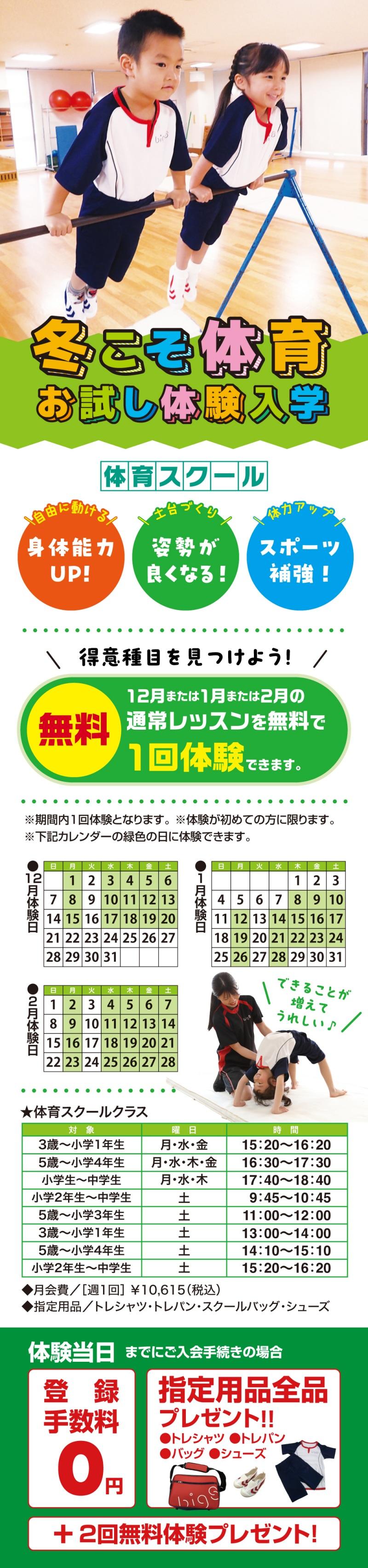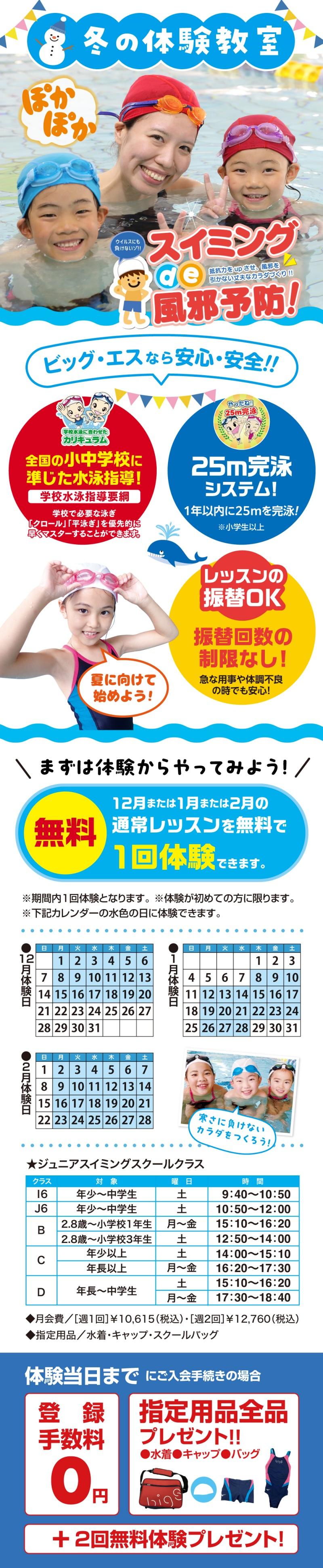 ビッグエス東海では12月~2月の期間、各スクールにて体験レッスン受講生を募集します!!