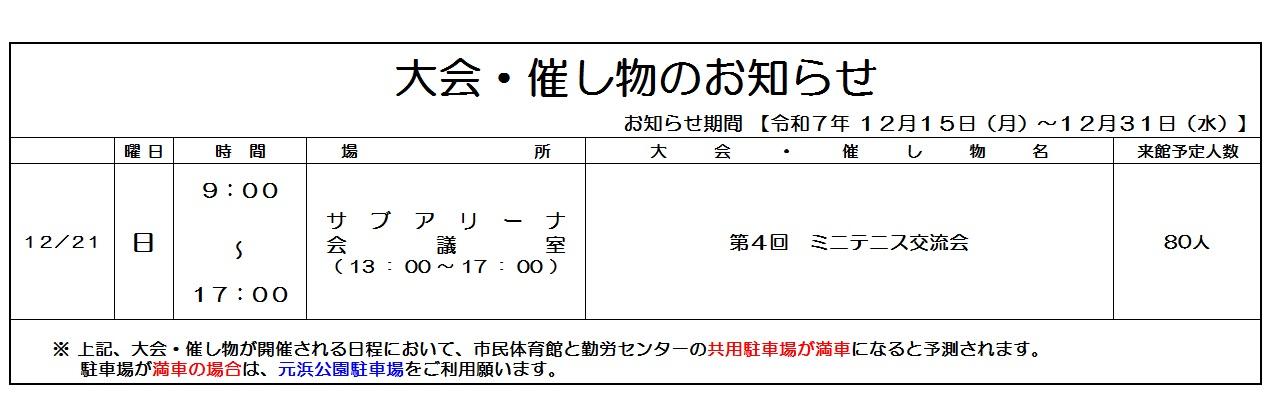 【大会・催し物のお知らせ 期間:12月15日(月)~12月31日(水)】