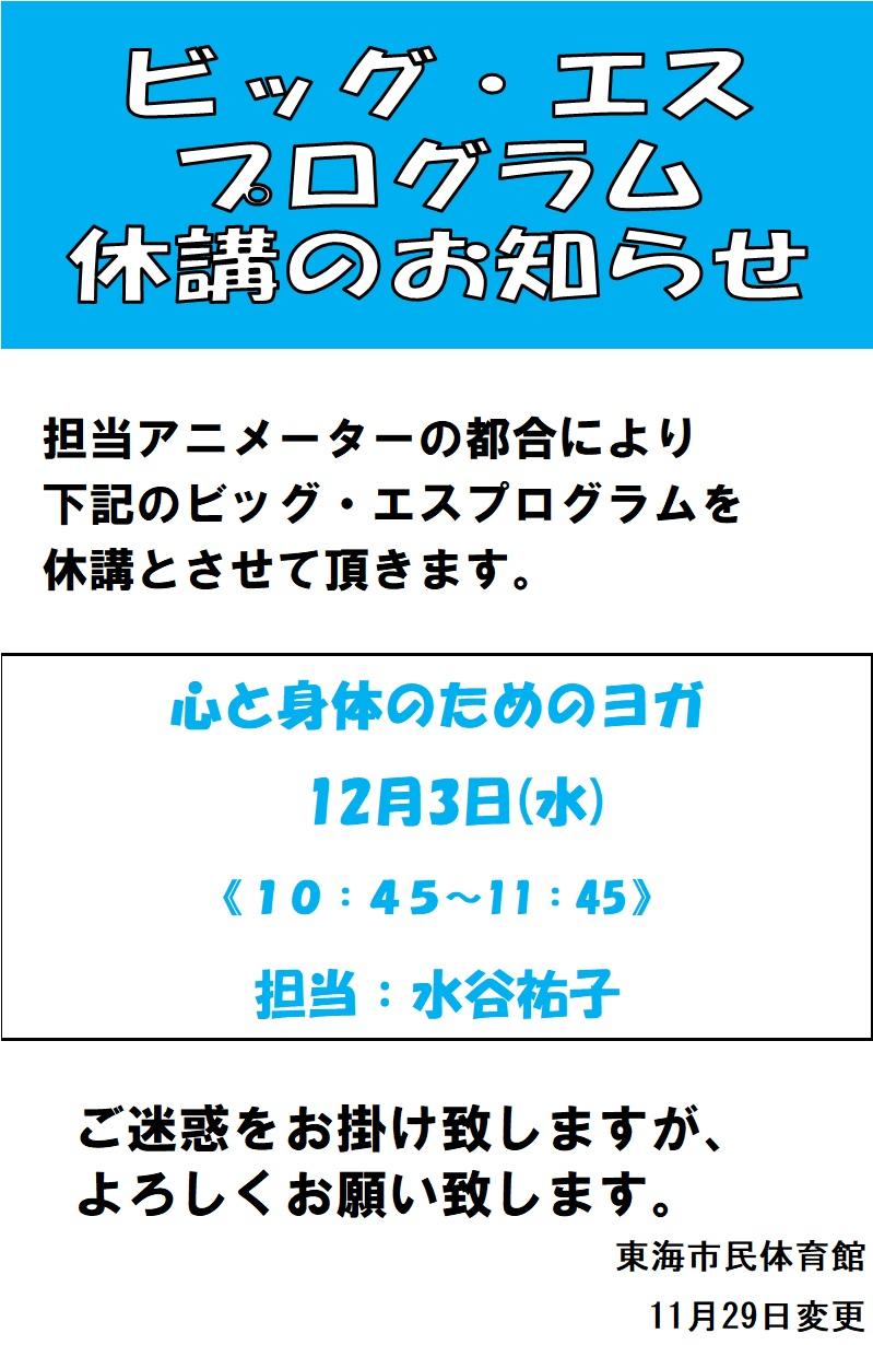 ビッグ・エスプログラム 休講のお知らせ