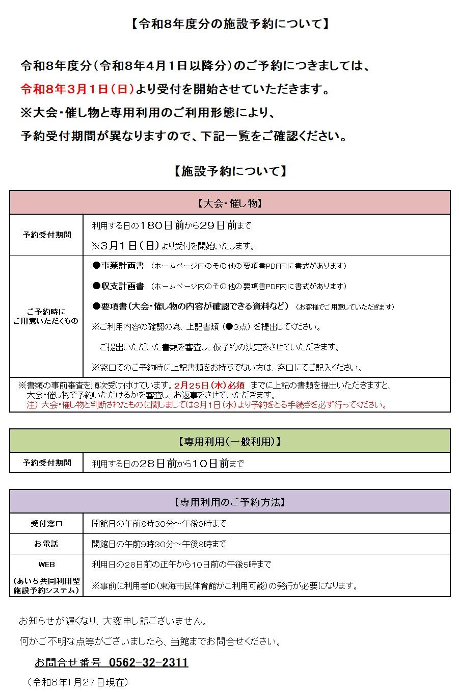 R8年度 体育館施設予約受付について