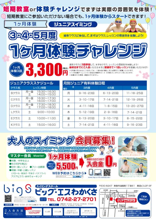 ※このサービスは、ビッグ・エスわかくさスイミングスクール会員様限定です。